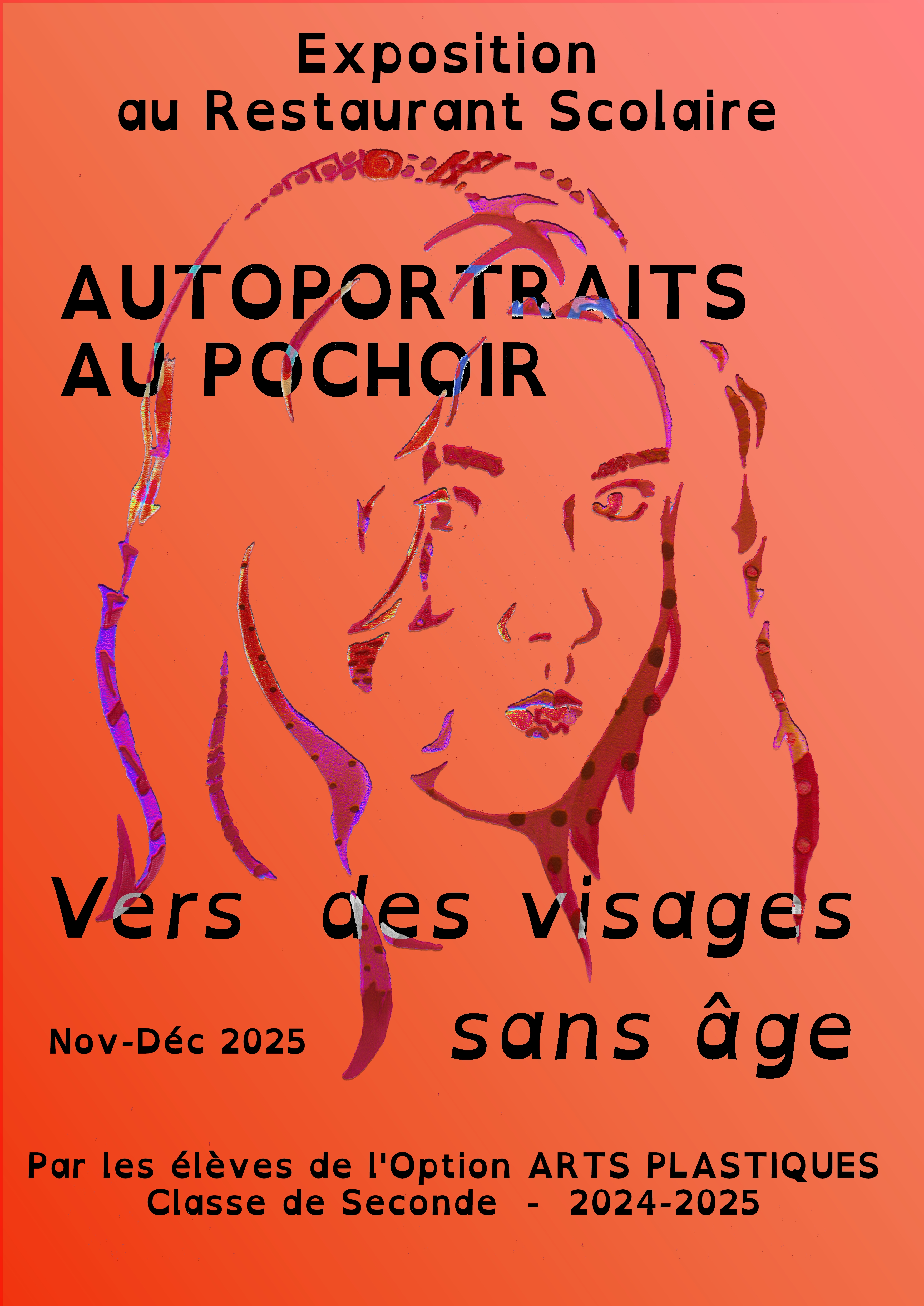 Une nouvelle exposition est proposée au restaurant scolaire : "Vers des visages sans âges". Les élèves de l'option arts plastiques en 2nde avec M. Brunot ont réalisé des autoportraits au pochoir.